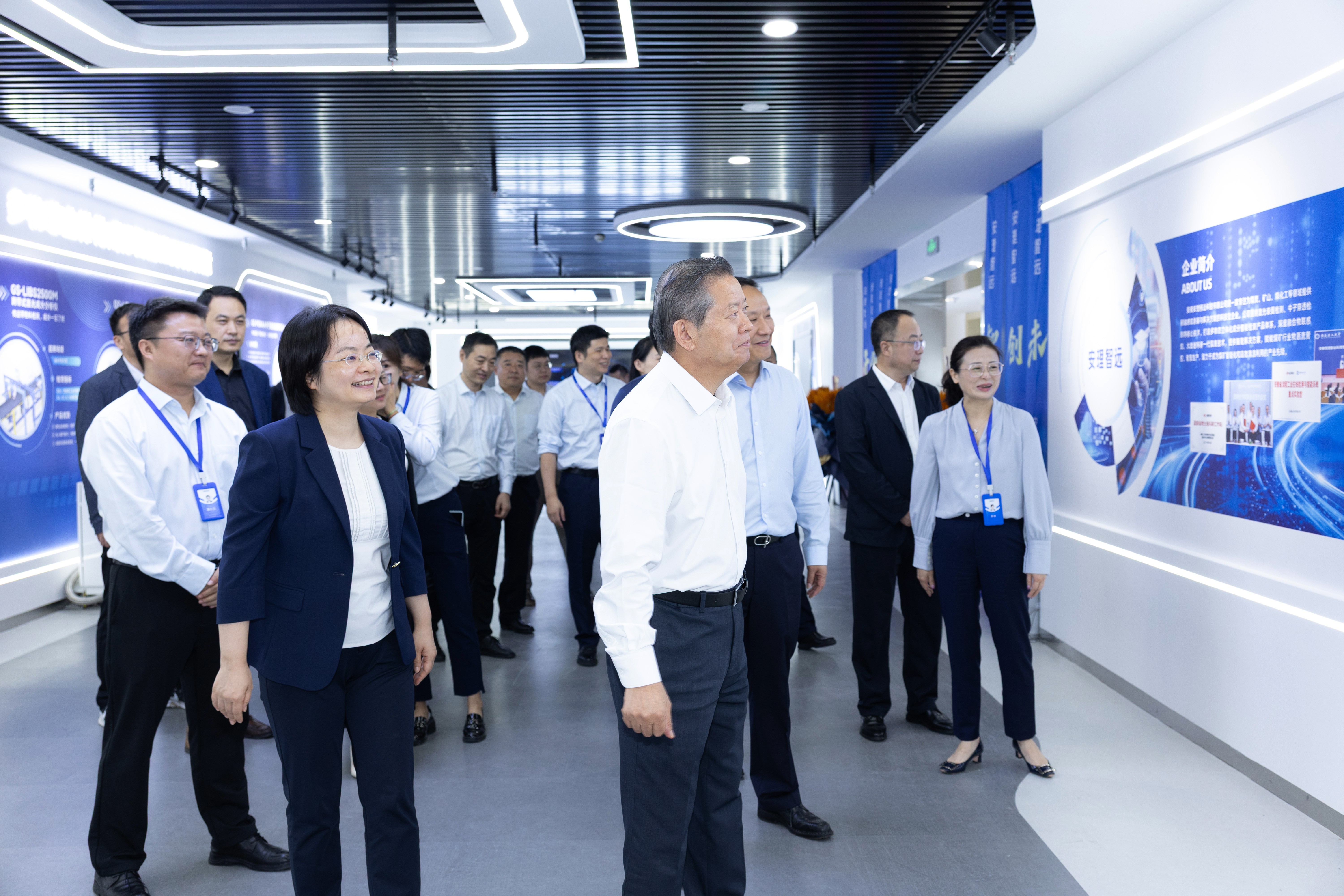 揭牌儀式后,袁亮院士、吳華峰董事長及出席嘉賓們一同參觀了安理智遠展示中心,深入了解公司的業(yè)務(wù)布局、產(chǎn)品體系及未來展望。